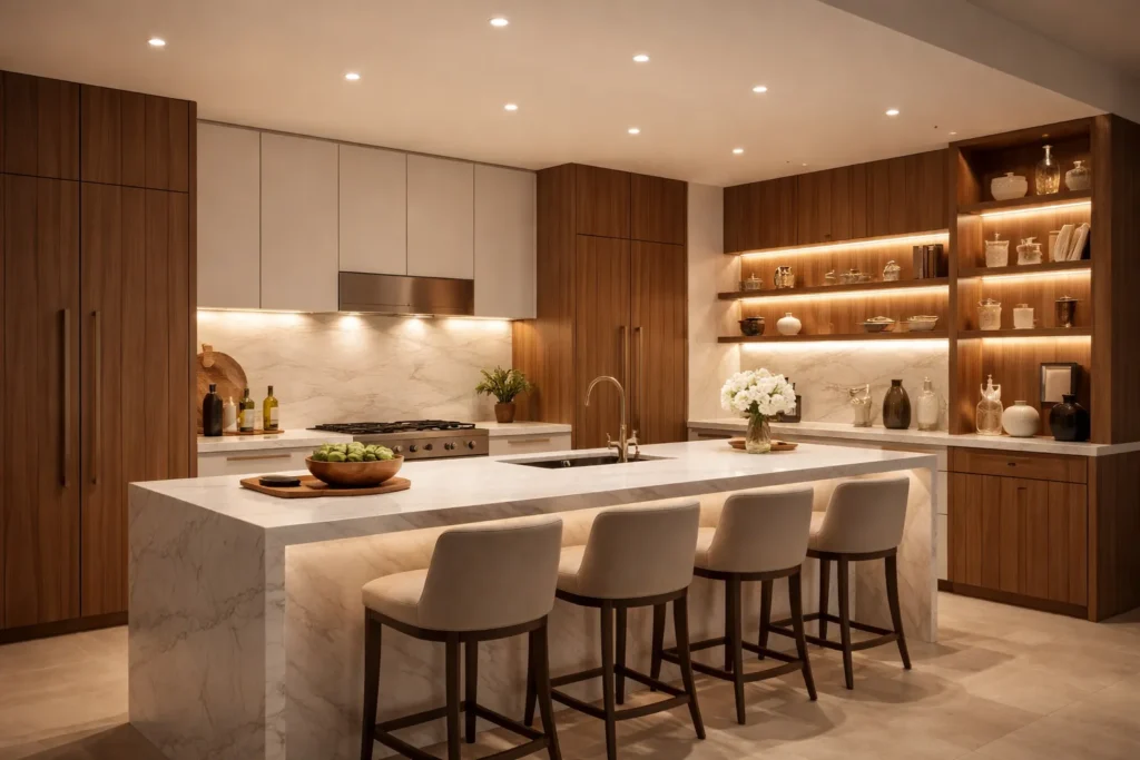A luxurious kitchen comes from thoughtful planning rather than excessive spending. When layout efficiency, layered lighting, balanced colors, and consistent materials work together, the space feels both comfortable and visually refined.