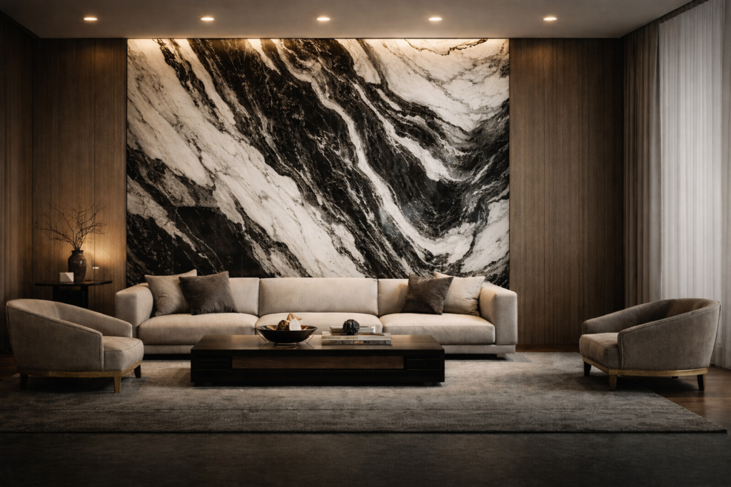 Premium interiors focus attention on a clear focal point rather than many small decorations. A single strong element gives the space identity and makes the design feel intentional and organized.