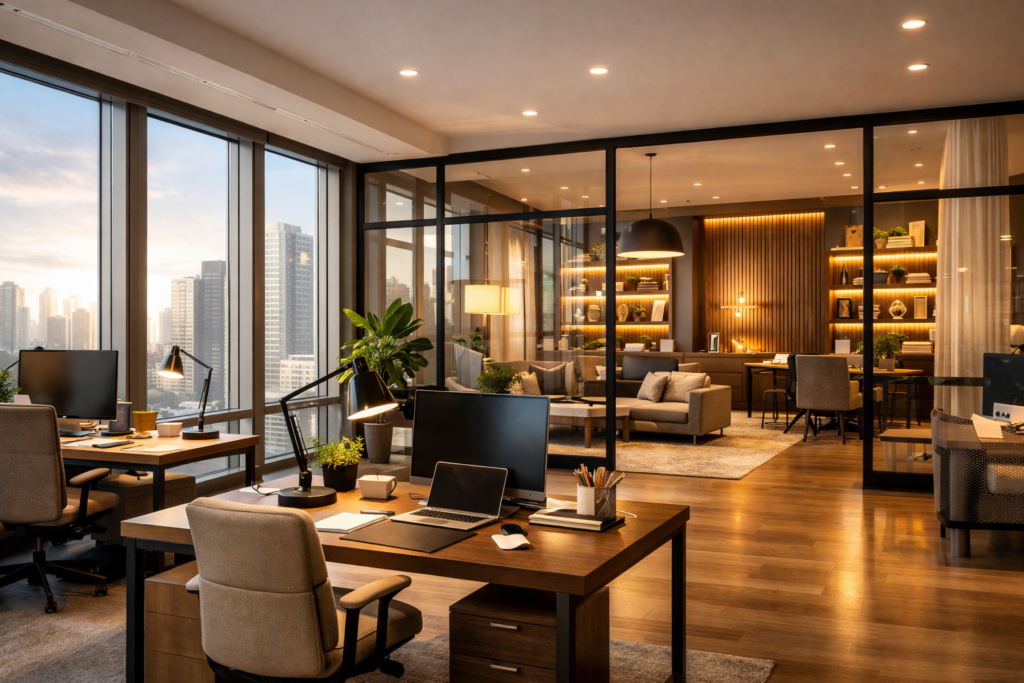 A cluttered or poorly lit office can reduce motivation and productivity. In contrast, a thoughtfully designed workspace promotes clarity, organization, and positive energy.