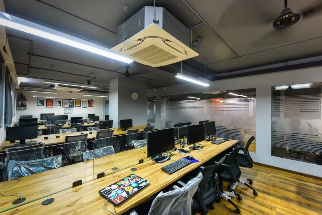 A vibrant IT office interior with open layouts, ergonomic workstations, collaborative zones, and contemporary finishes that foster innovation, efficiency, and a premium corporate feel.