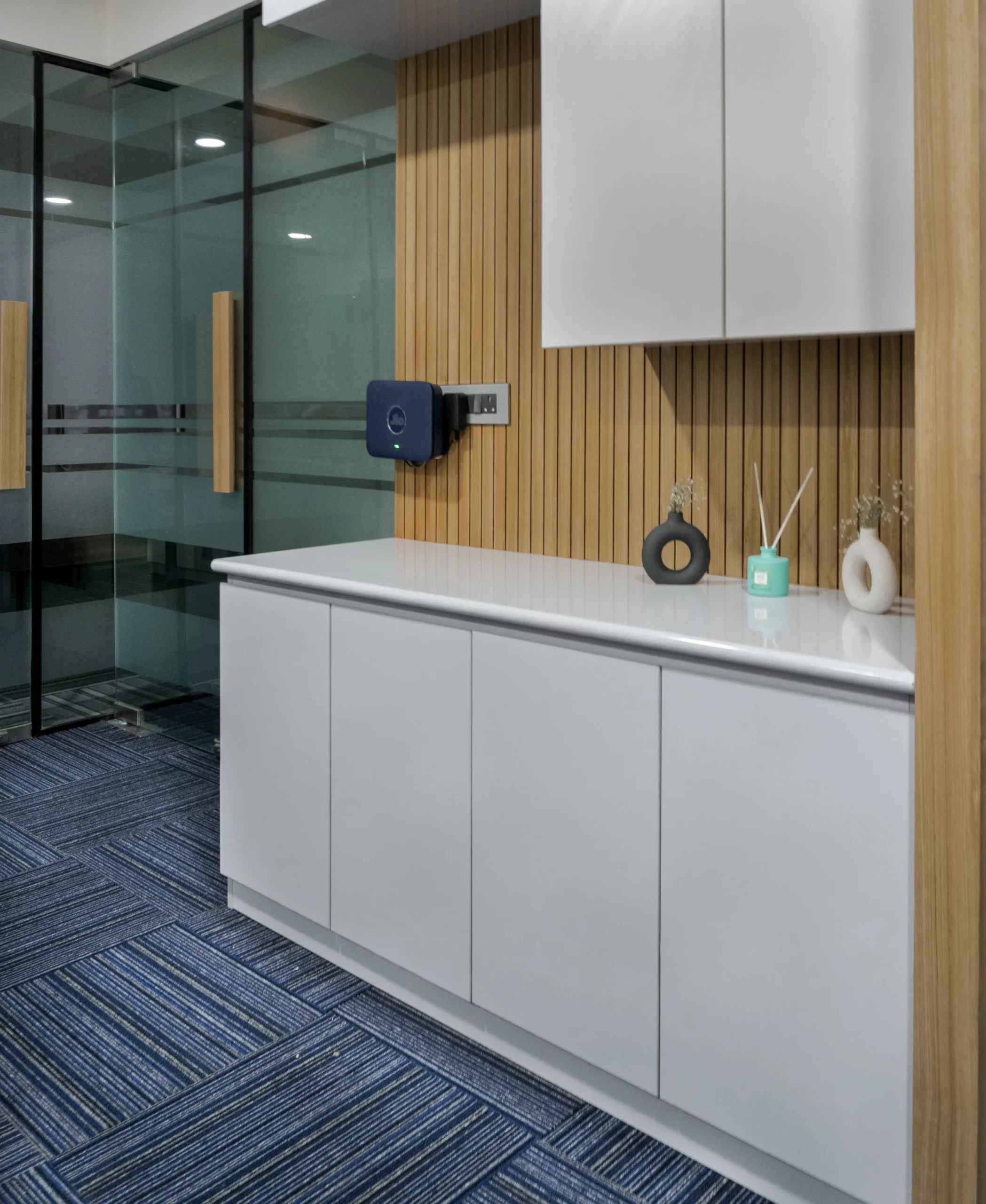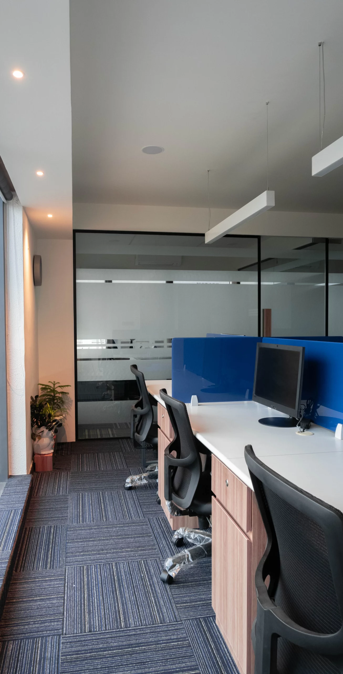 The office required a modern corporate identity, optimized workflow, and functional layouts that balanced employee productivity with a premium aesthetic reflective of the brand.